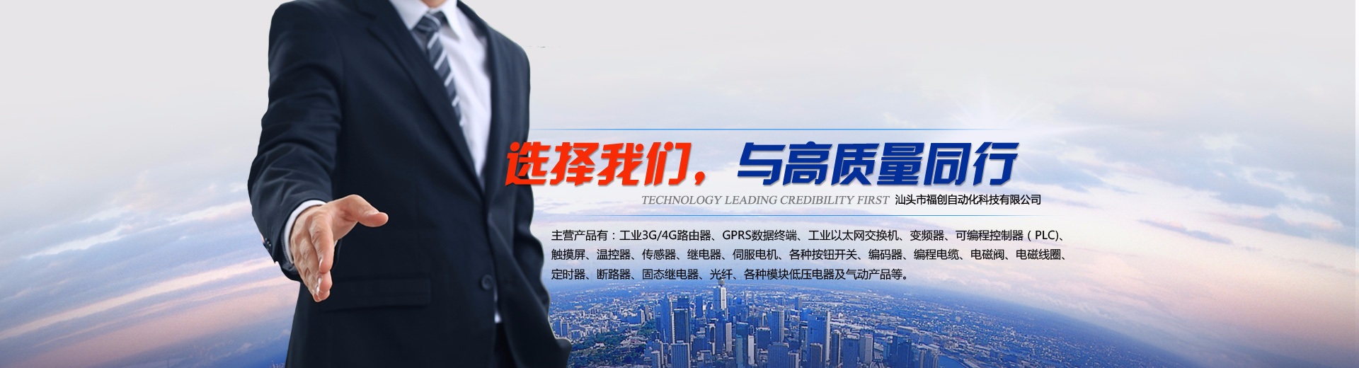 汕頭市福創(chuàng)自動(dòng)化科技有限公司是一家集自動(dòng)化元件的代理銷售與維修、自動(dòng)化設(shè)備設(shè)計(jì)制造、自動(dòng)化工程安裝改造、機(jī)電工程安裝改造、自動(dòng)化機(jī)械設(shè)備設(shè)計(jì)與制造的企業(yè)。  主營產(chǎn)品有:工業(yè)3G/4G路由器、GPRS數(shù)據(jù)終端、工業(yè)以太網(wǎng)交換機(jī)、變頻器、可編程控制器(PLC)、觸摸屏、溫控器、傳感器、繼電器、伺服電機(jī)、各種按鈕開關(guān)、編碼器、編程電纜、電磁閥、電磁線圈、定時(shí)器、斷路器、固態(tài)繼電器、光纖、各種模塊低壓電器及氣動(dòng)產(chǎn)品等。